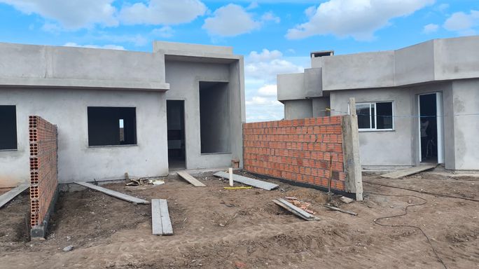 Casas novas de 2 dormitórios no bairro Planejado Pires, em Camaquã/RS. Imóveis em fase de construção. Casas de 2 dormitórios com sala e cozinha conjugadas, banheiro social, área de serviço, churrasqueira, vaga de garagem e pátio todo murado nos fundos. Área construída de 58m² e terreno com 125m² (5x25m). Fotos ilustrativas demonstrando uma das unidades já vendidas. Imóveis atuais em fase de construção. Aceitamos financiamento em todos os bancos. Solicite simulação com nossos corretores. Entre em contato e faça sua proposta. Valores sujeitos à alteração sem aviso prévio.