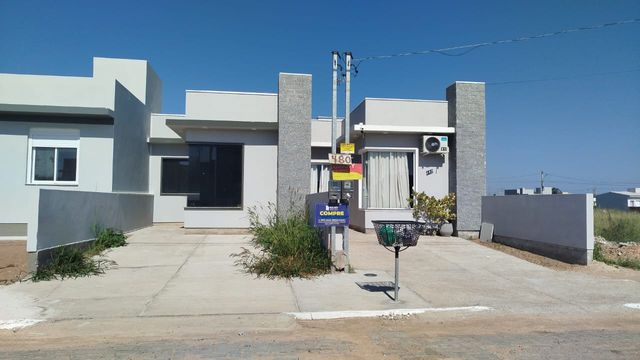 Casas novas de 2 dormitórios no bairro Planejado Pires, em Camaquã/RS. Imóveis em fase de construção. Casas de 2 dormitórios com sala e cozinha conjugadas, banheiro social, área de serviço, churrasqueira, vaga de garagem e pátio todo murado nos fundos. Área construída de 58m² e terreno com 125m² (5x25m). Fotos ilustrativas demonstrando uma das unidades já vendidas. Imóveis atuais em fase de construção. Aceitamos financiamento em todos os bancos. Solicite simulação com nossos corretores. Entre em contato e faça sua proposta. Valores sujeitos à alteração sem aviso prévio.