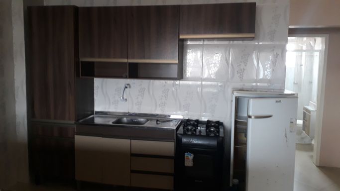 Apartamento com quarto amplo, banheiro completo com box, sala e cozinha conjugadas com bancada de granito e sacada. Salão de festas com churrasqueira no condomínio.