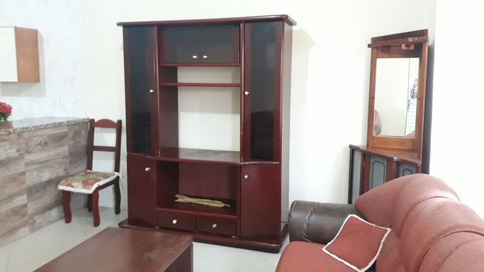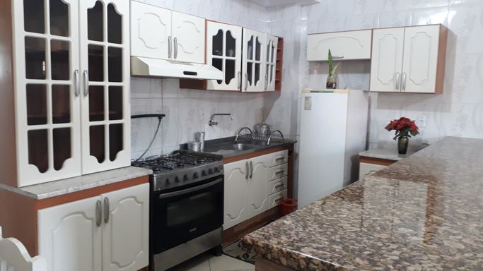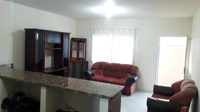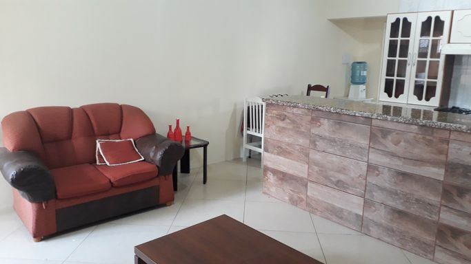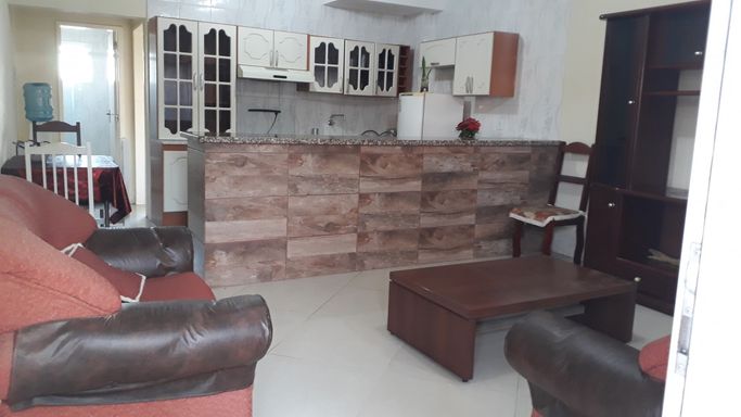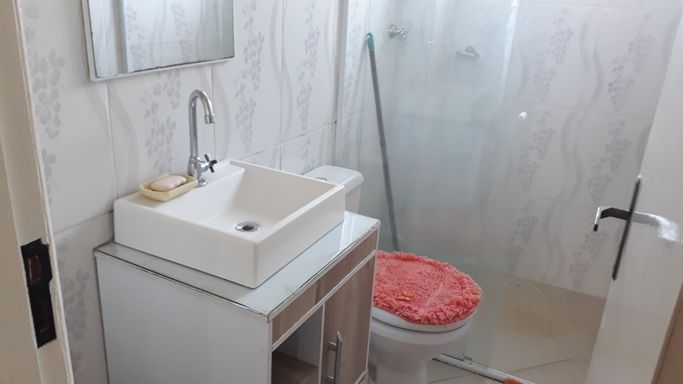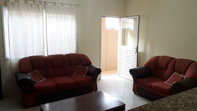 Apartamento térreo todo mobiliado com quarto amplo, banheiro completo com box, sala e cozinha conjugadas com bancada de granito e móveis de qualidade. Não possui vaga de garagem. Salão de festas com churrasqueira no condomínio.