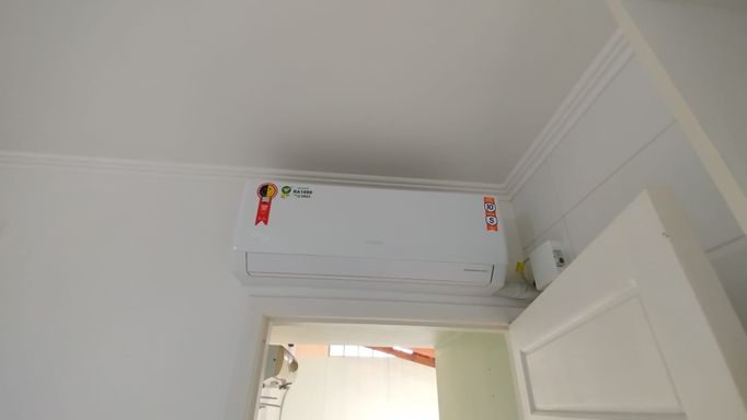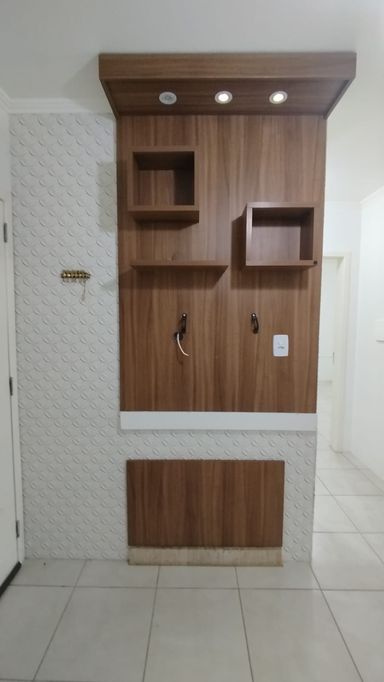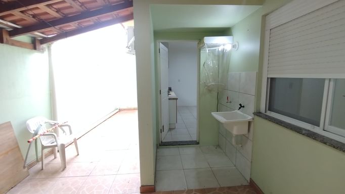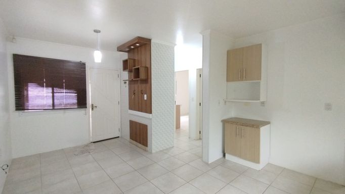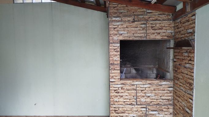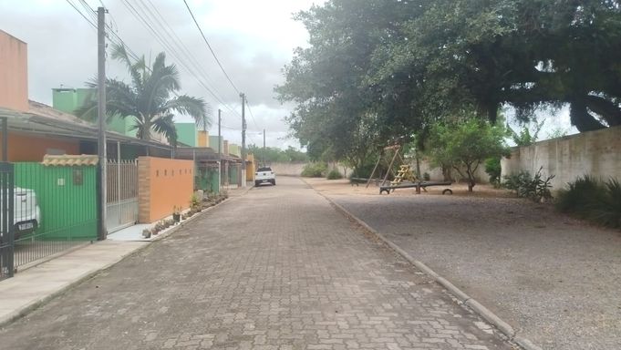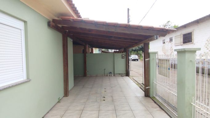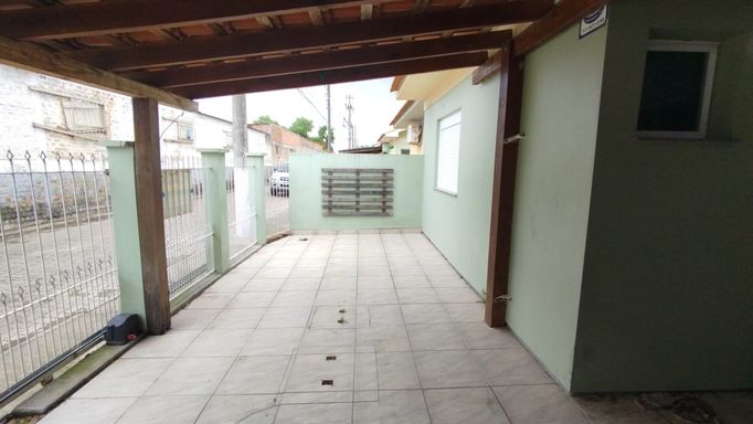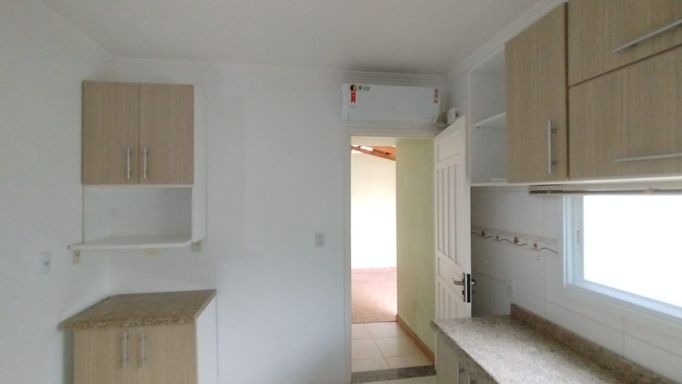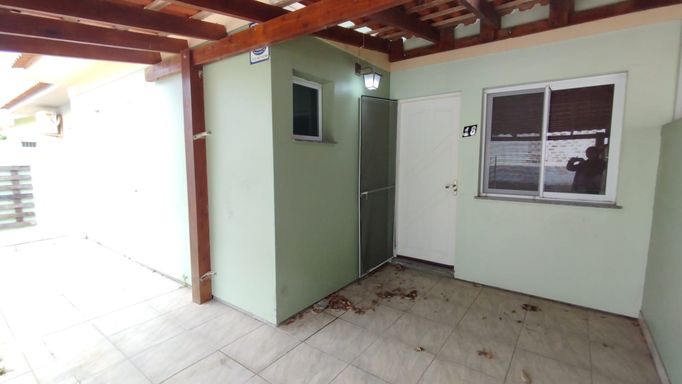 Casa 2 dormitórios com 55,28m². Portão eletrônico, alarme, lareira, churrasqueira, ar-condicionado, cozinha planejada, banheiro social e quarto semimobiliado. Possui vaga coberta para veículo.