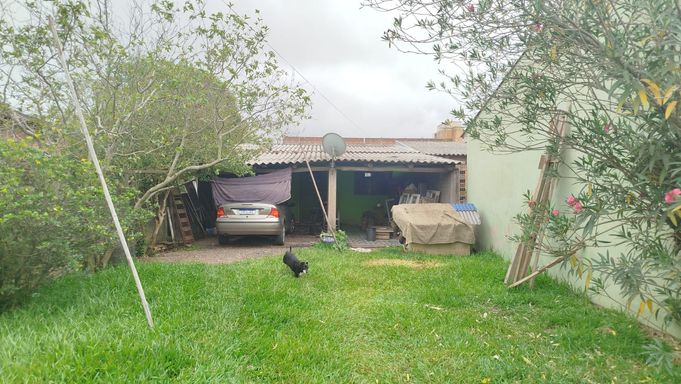 Casa mista com cobertura para carro localizada no bairro Viegas, em Camaquã/RS.