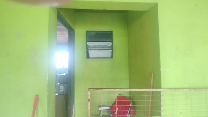 Casa com 2 quartos, sala de estar, cozinha, banheiro social, cobertura para carro e quintal amplo na frente.