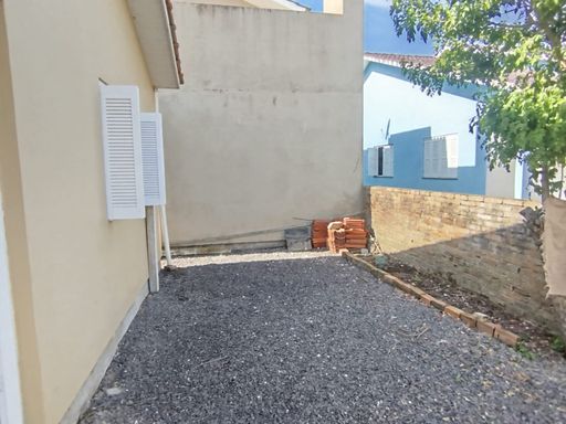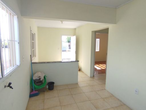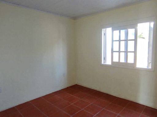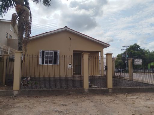 Casa com 70m², 2 dormitórios, sala de estar, cozinha, banheiro social, área de serviço e pequeno pátio no entorno. Imóvel de esquina com rua calçada. Terreno com área de 150m² (10x15m).