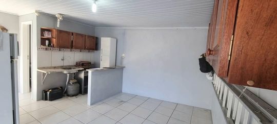 A casa tem 2 quartos, sala de estar, cozinha, banheiro social, área de serviço. Nos fundos, garagem coberta com área de lazer, sanitário e pátio.