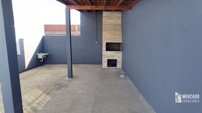 Casa de laje com caixa d’água e pátio individual, toda murada. Com 2 quartos, sala, cozinha, banheiro e churrasqueira.