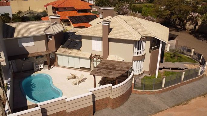 Sobrado alto padrão em excelente localização no Jardim do Forte, um dos melhores bairros residenciais para morar ou investir em Camaquã/RS. Imóvel todo murado de esquina com portão eletrônico, calefator, energia solar e piscina aquecida. Área construída de 264m² e terreno com 450m² (15x30m). O sobrado possui 4 suítes sendo uma com closet e hidromassagem, móveis planejados, living 3 ambientes, cozinha ampla, salão de festa com churrasqueira, sacada nos quartos, piscina, quiosque, escritório, lavanderia, área gourmet e garagem coberta para 2 veículos. Entre em contato e faça sua proposta. Valores sujeitos à alteração sem aviso prévio.