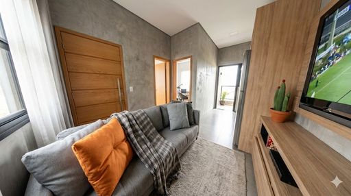 Casa com um quarto, banheiro social, sala e cozinha conjugadas e vaga de garagem descoberta.