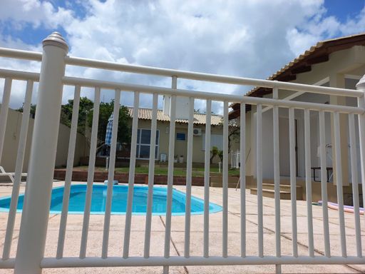Área de lazer nos fundos com piscina, salão de festas com churrasqueira, banheiro e mais um quarto/escritório. Jardim frente e fundos.