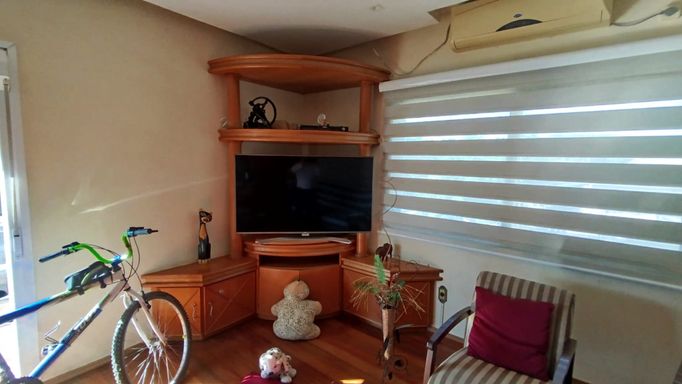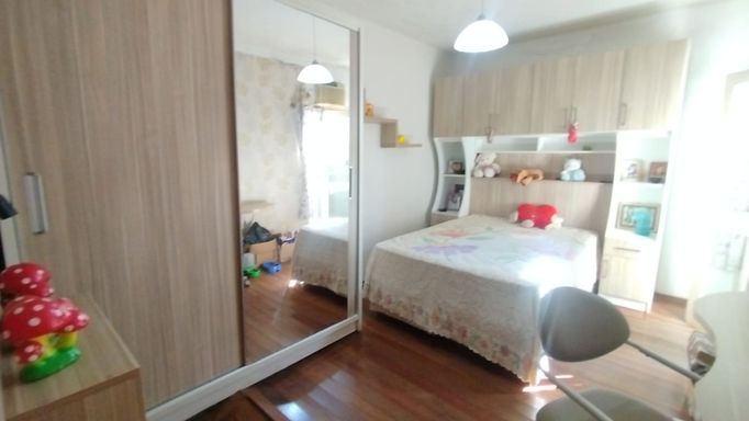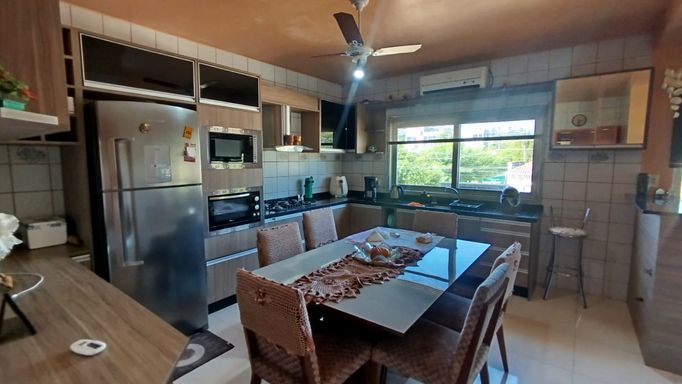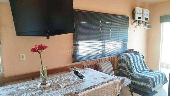 - Apartamento maior e de qualidade superior, com aproximadamente 120m², já todo mobiliado, 3 dormitórios, sala ampla, cozinha e salão de festas, com sacada na frente e nos fundos. Acesso deste apartamento é na frente do prédio, pela avenida principal.