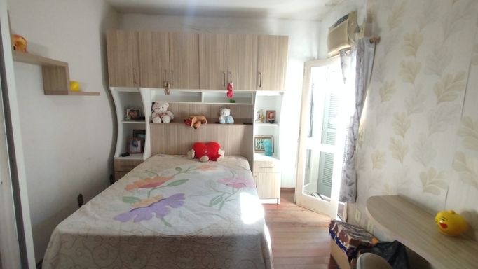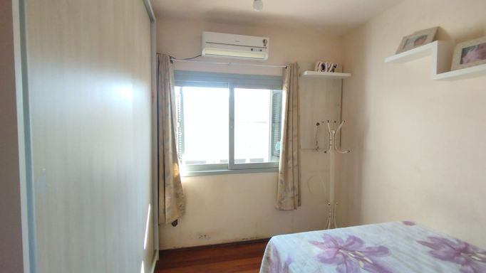 - Apartamento menor em torno de 70m² já alugado, com sacada frente e fundos e acesso pelos fundos do prédio com escada.
